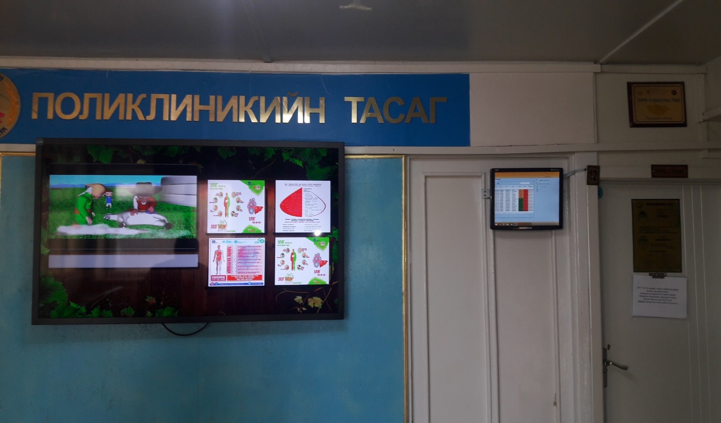 Electronic LCD board: Each inspection room has an electronic board outside, which provides information about the doctor, wait time and number of patients.